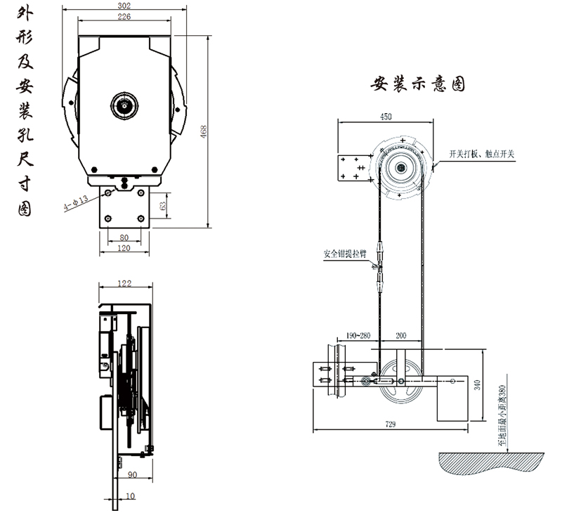 4、绳轮节圆直径:Φ200mm